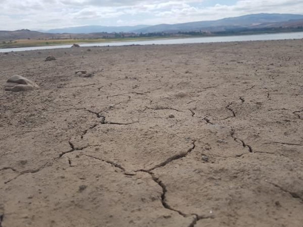 Kayseri'deki Sarıoğlan Barajı'nda su seviyesi kuraklık nedeniyle yüzde 20’ye düştü.