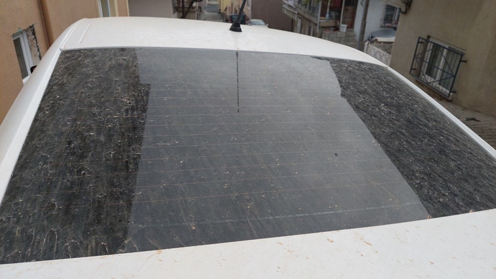 Gökyüzünden çamur yağışı sebebiyle araçların üzeri çamurla kaplandı.