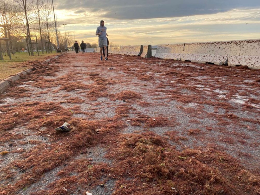 Caddebostan sahilinde sabah yürüşü yapan Emine Kaysel, "Yürüyüş yollarındaki yosunları ilk defa gördüm. Geçen fırtınada vardı. Sabah saatlerinden itibaren belediye ekipleri de sahil kısımlardaki yosunları temizlemeye çalışıyorlar. Sahil boyunca çok kırmızı yosun var" dedi.