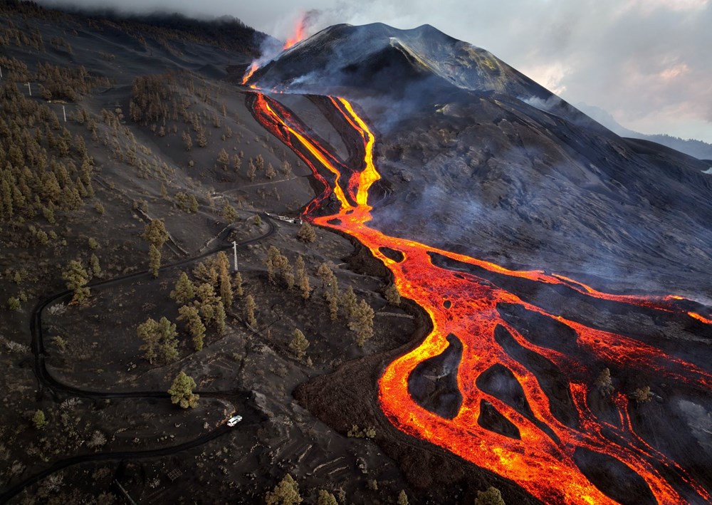 Kanarya Adaları Volkanoloji Enstitüsü'nün bildirdiğine göre, İspanya'nın La Palma adasındaki Cumbre Vieja yanardağından çıkan yeni lav tüpleri, saniyede 1 metreye varan hızlarda yokuş aşağı akan lav gönderiyor.
