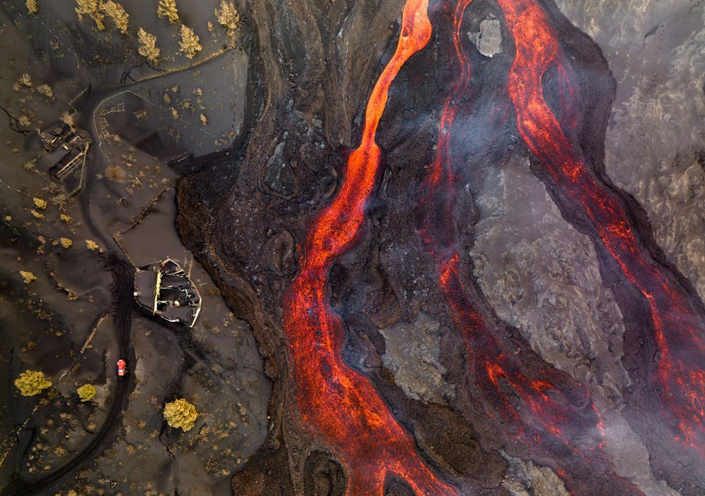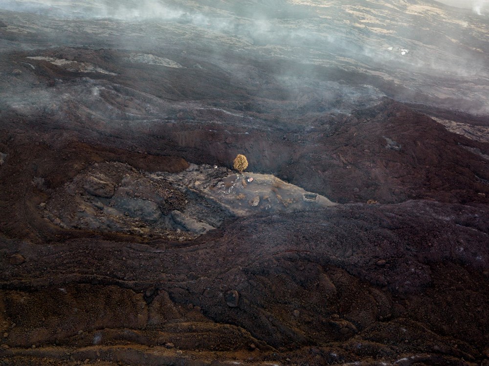 Bölgeden gelen yeni fotoğraflar, lavların adada hali hazırda sağlam kalan birkaç evi de tehdit ettiğini gösteriyor.