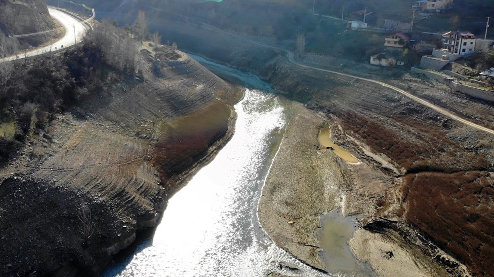 Vauk Dağı'ndan doğup Karadeniz’e dökülen ve geçtiği 160 kilometre boyunca derin vadilere hayat veren Harşit Çayı üzerinde enerji üretimi için yapılan Torul Barajı ve Hidroelektrik Santrali (HES) gölünde yağışsız geçen yaz ve sonbahar mevsiminin ardından su seviyesi ciddi oranda düştü.