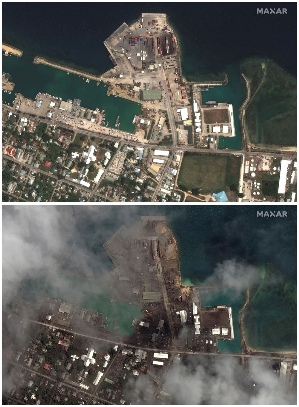 Bununla birlikte ABD merkezli uzay teknoloji şirketi Maxar da Tonga'ya ait havadan çekilmiş fotoğrafları yayımladı.