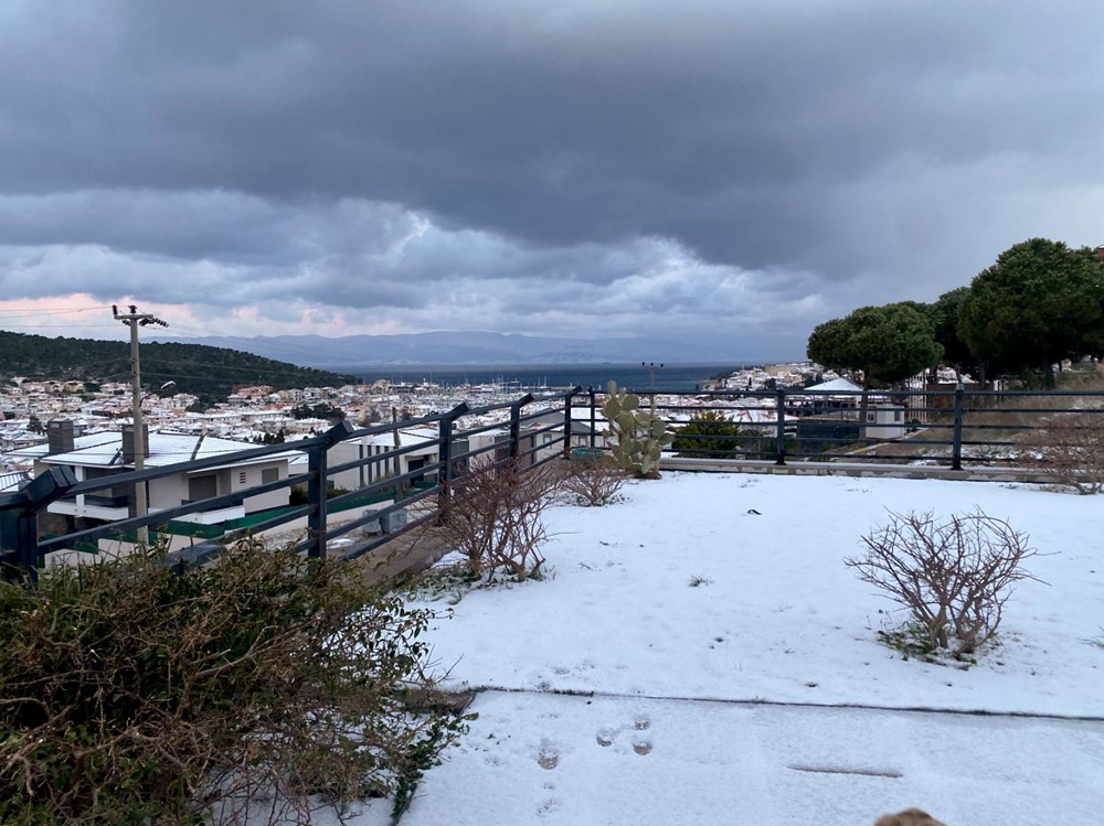 Yurdun büyük bölümünü etkisi altına alan kar, yaz sezonunun önde gelen tatil merkezlerinden İzmri'in Çeşme ilçesinde de etkili oldu.